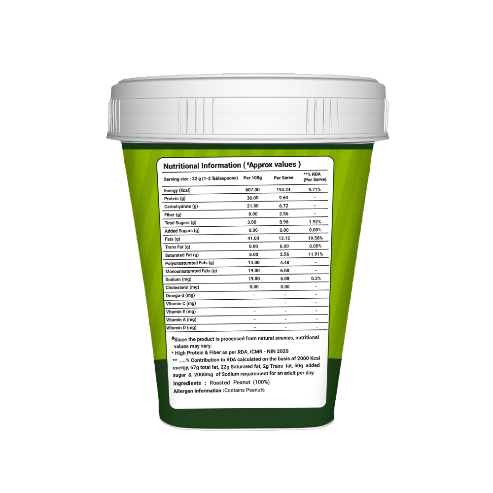Natural Peanut Butter Unsweetened contains only pure roasted peanuts. With 30g protein per serving, it supports muscle growth, sustained energy, and heart health.